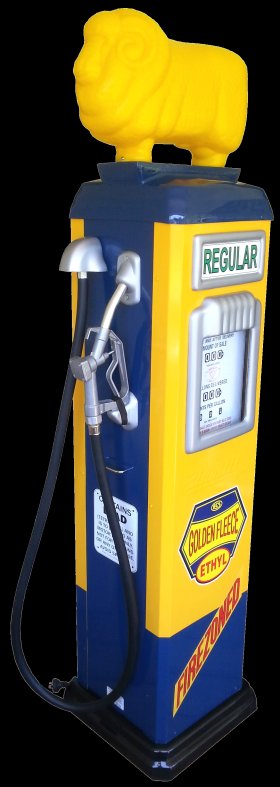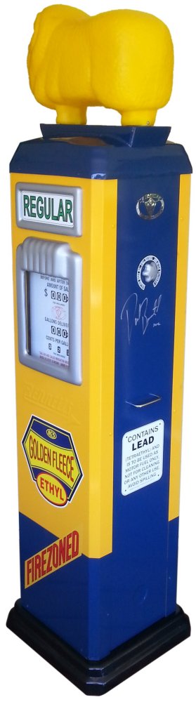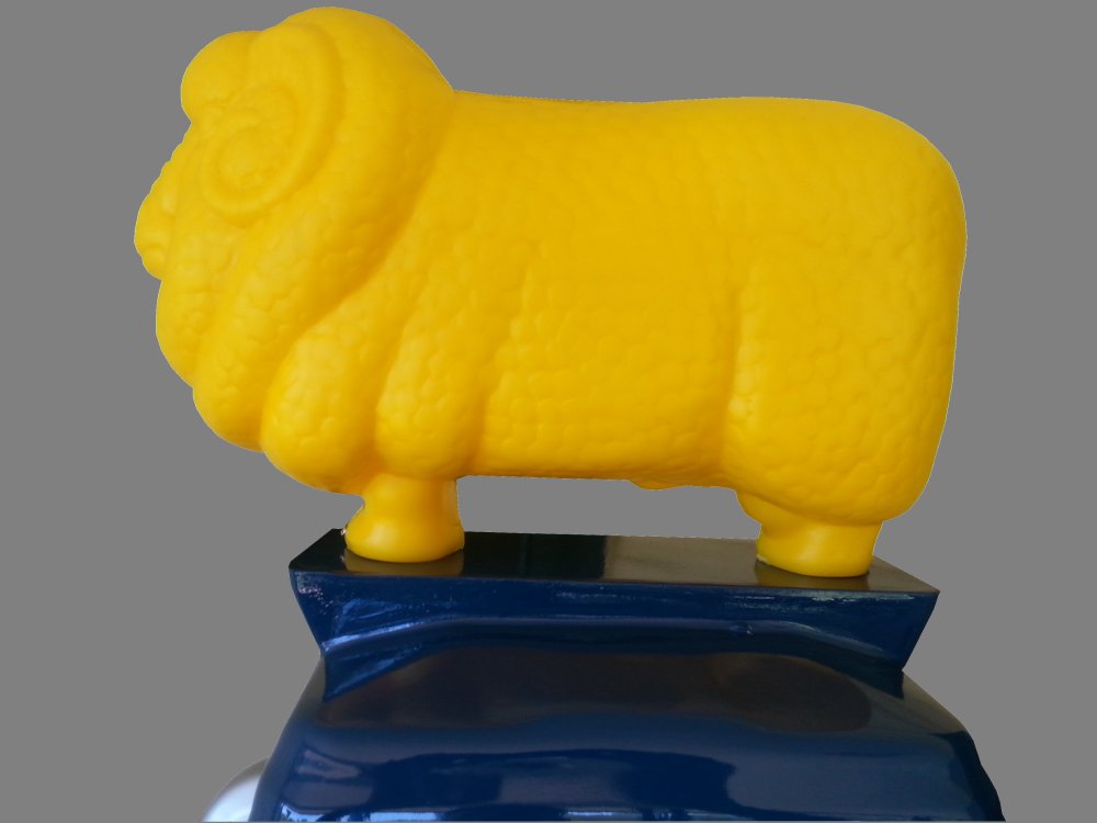 This Golden Fleece replica ram is roto moulded in Australia by Dynaplas. At Dynaplas we have been Roto moulding the Golden Fleece Yellow SINCE 1980 when we matched the colour to fit their trucks / oil tankers. The Golden Fleece Ram has been manufactured from UV stabilised virgin polyethylene and was first made to put on vintage petrol bowsers. When we did Research and Development we found that other repo's did not spend much on their tooling. After spending well over $8,000 on our design and mould we are confident that our repo is the best on the market having the cleanest seem line. The original Golden Fleece Ram was made from cast iron. Now you are able to light up the ram which really brings some bling to an old icon.